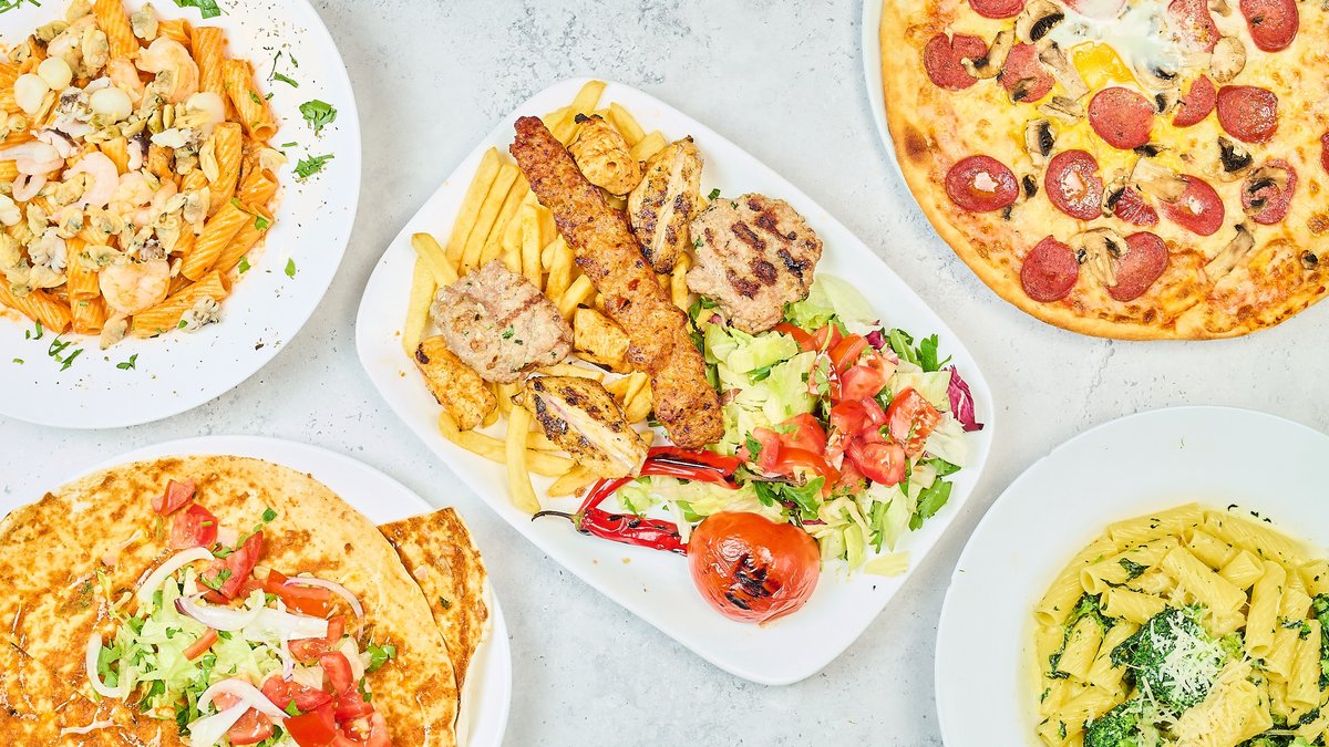 alle Gerichte werden mit Salat, einer Soße und einer Belage deiner Wahl serviert