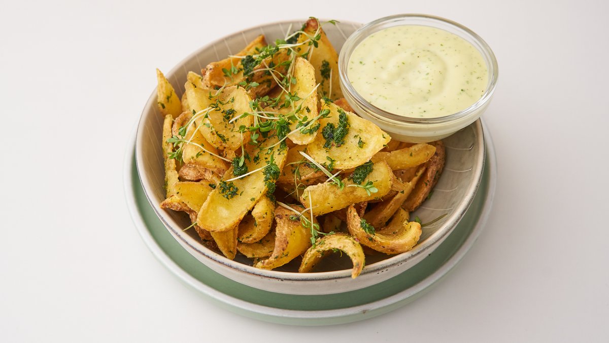 mit Oliven-Kräuteröl, Chimichurri-Mayonnaise und Meersalz