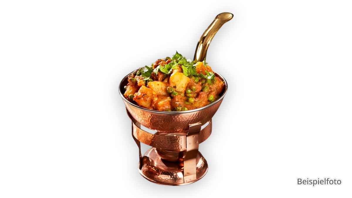 alle Gerichte werden in Kichererbsenmehl frittiert („Samosas” wird nicht in Kichererbsenmehl frittiert)