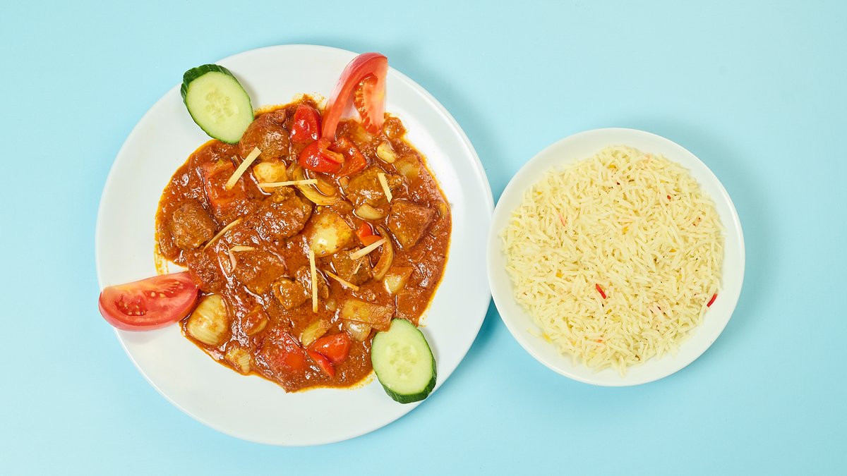 alle Gerichte werden mit Lammfleisch zubereitet und mit Reis und Salat serviert