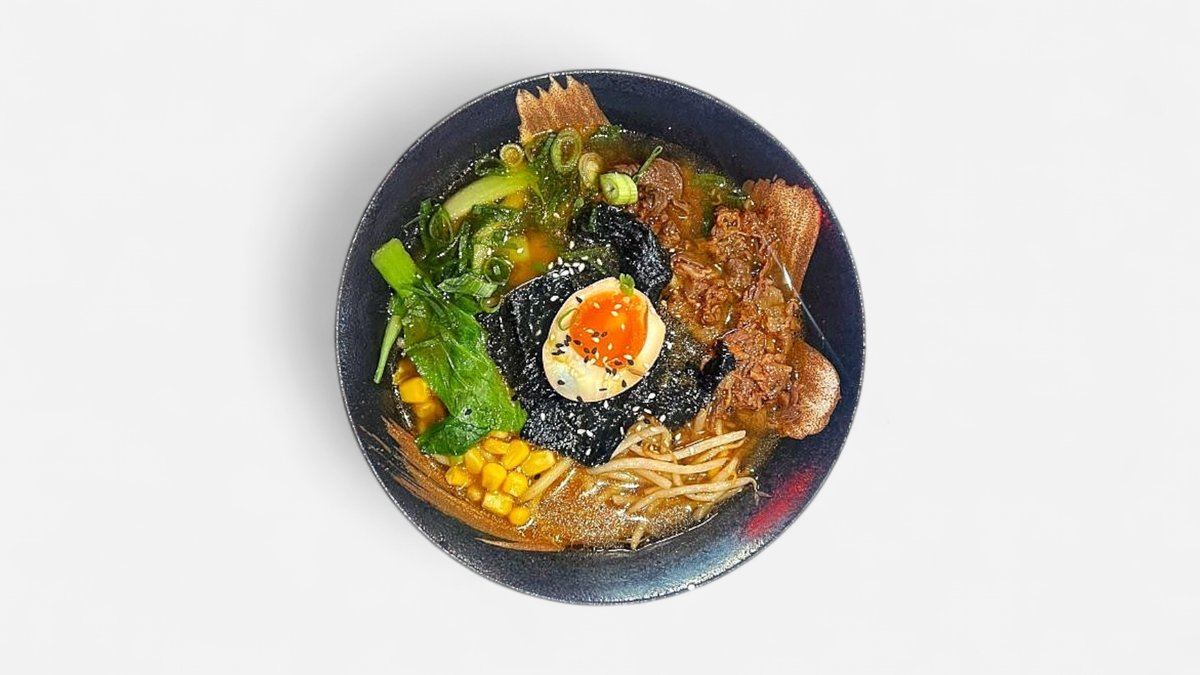 Fein abgestimmte, leicht scharfe Brühe mit Tiefgang. Serviert mit saftigen Rindfleischstreifen, frischem Pakchoi, goldenem Mais mit einem halben Ei und dem nussigen Aroma von schwarzem und weißem Sesam. Ein herzhaftes Erlebnis mit dezenter Schärfe