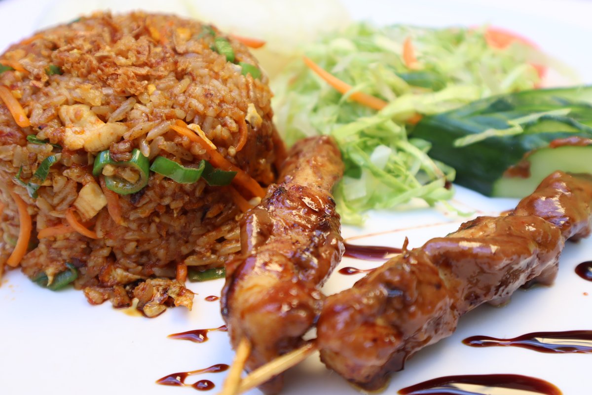 alle Gerichte werden mit Reis serviert („102. Mie Goreng” wird ohne Reis serviert)
