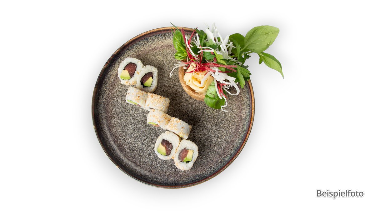 Ein lebendiges asiatisches Küchenangebot mit frischem Sushi, aromatischen Bowls, und Salaten