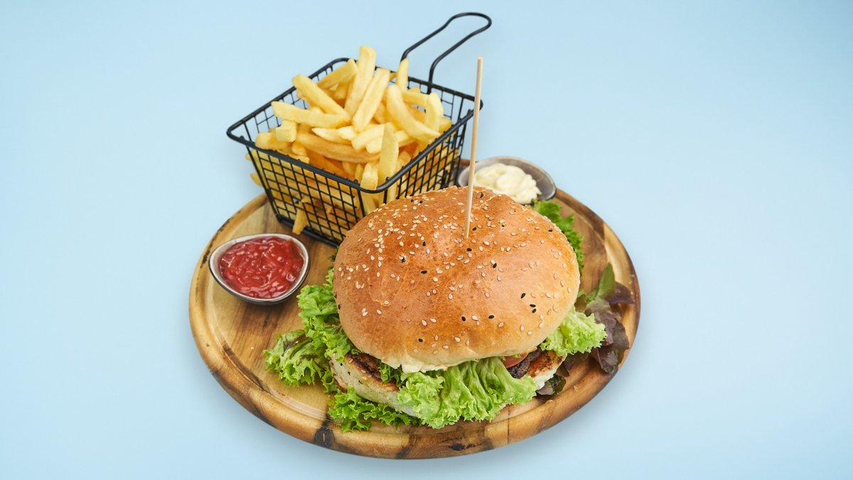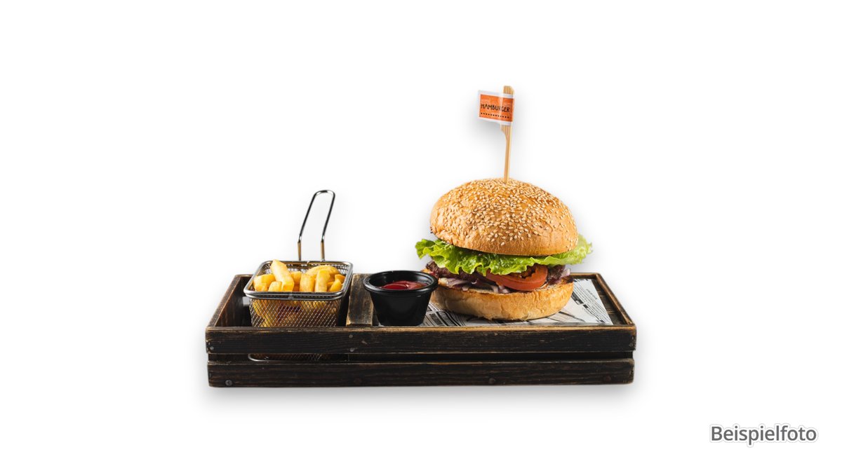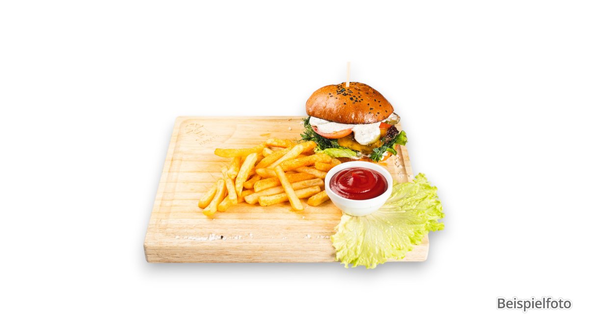 1x Hamburger 1x Pommes frites 1x alkoholfreies Getränk 0,33 I deiner Wahl