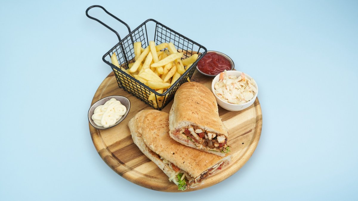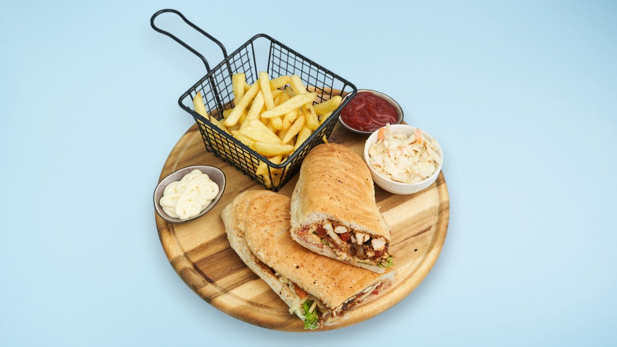 1x Shish Tawouk Sandwich 1x Pommes frites 1x alkoholfreies Getränk 0,33 I deiner Wahl