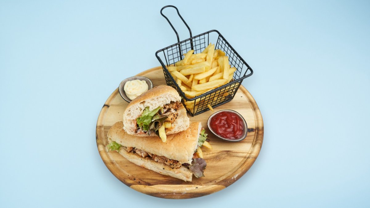 1x Fajita Sandwich 1x Pommes frites 1x alkoholfreies Getränk 0,33 I deiner Wahl