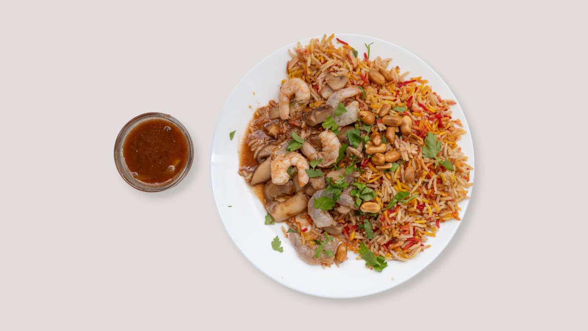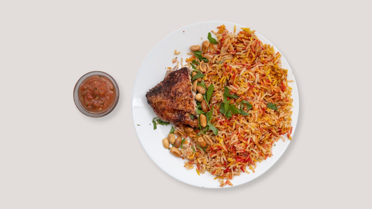 alle Gerichte werden mit Basmatireis, Sahawiq und Mandeln serviert
