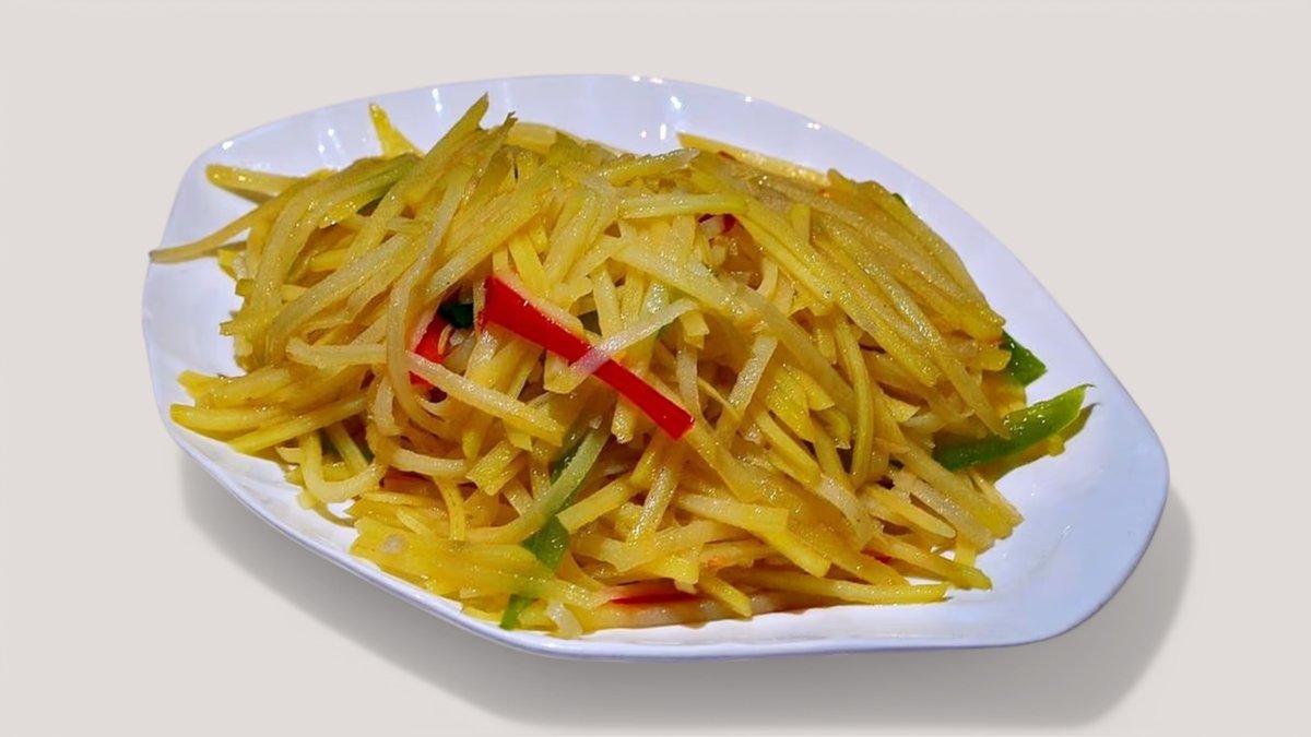 dünn geschnittene Aubergine mit Zwiebel, Karotten, Morchel, Bambusstreifen- Yue Xiang Art