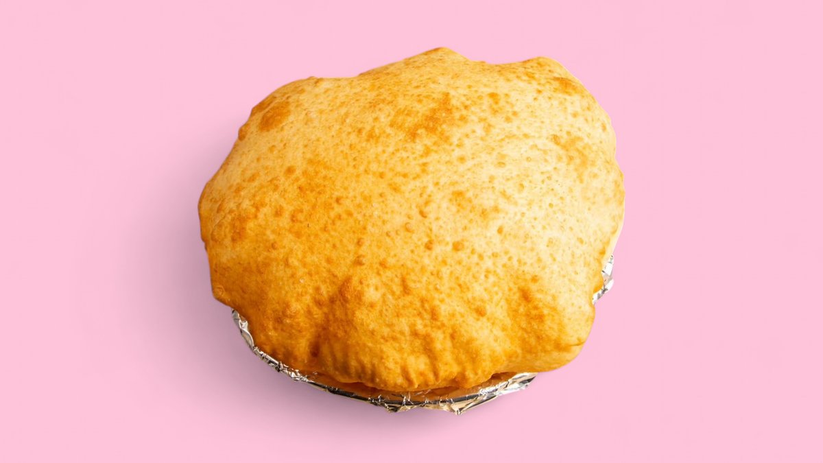 saftiges, gebackenes Fladenbrot, gefüllt mit cremigem Käse
