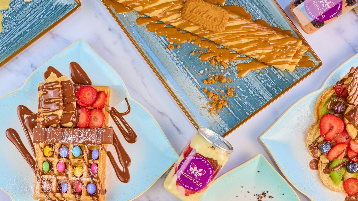 Das Mariposa Café bietet eine vielfältige Auswahl an süßen Spezialitäten. Auf der Karte stehen Waffeln mit beliebten Toppings wie Nutella, Oreo, Lotus, Pistazie, Kinderschokolade und frischen Früchten. Ergänzt wird das Angebot durch Bubble Waffeln, Crêpes und Pancakes. Das Café eignet sich ideal für alle, die Lust auf süße Snacks und Desserts haben 🍓🧇 Verkäufer: Firma: Wolt Enterprises Deutschland GmbH, Anschrift: Stralauer Allee 6, 10245 Berlin, Geschäftsführer: Hadi Zaklouta, Handelsregisternummer: HRB 217122 B, Registergericht: Amtsgericht Charlottenburg, E-Mail: support@wolt.com