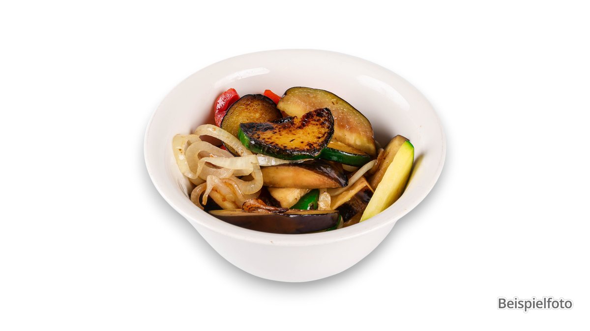 Grillgemüse, Steak Pommes frites und Knoblauch-Dip