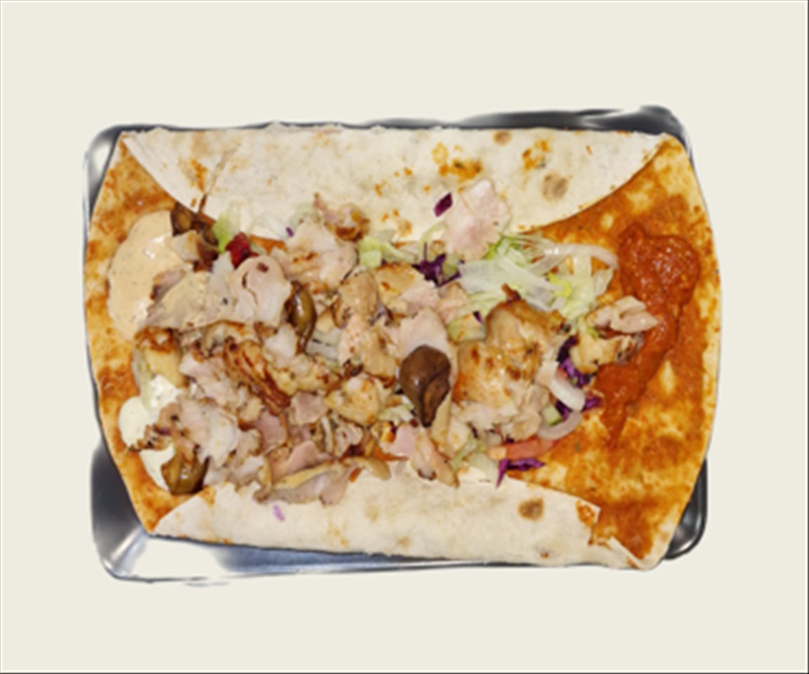 Alle Chicken Kebab (Tantuni) Gerichte werden mit Selbst zubereitetem Hähnchenbrustfilet, Salat und einer Soße Ihrer Wahl zubereitet.