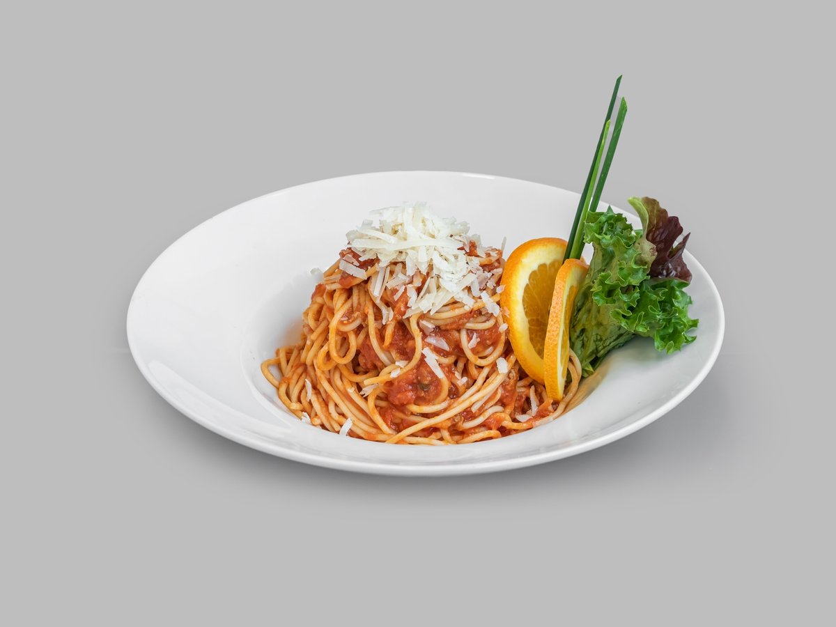mit Garnelen, Cherrytomaten, Knoblauch, Zwiebeln, Olivenöl und Basilikum
