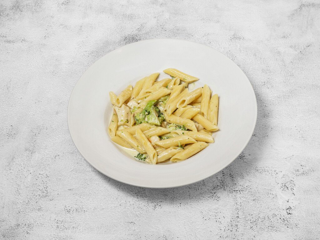 mit Brokkoli, Hähnchenbrust und Sahnesoße