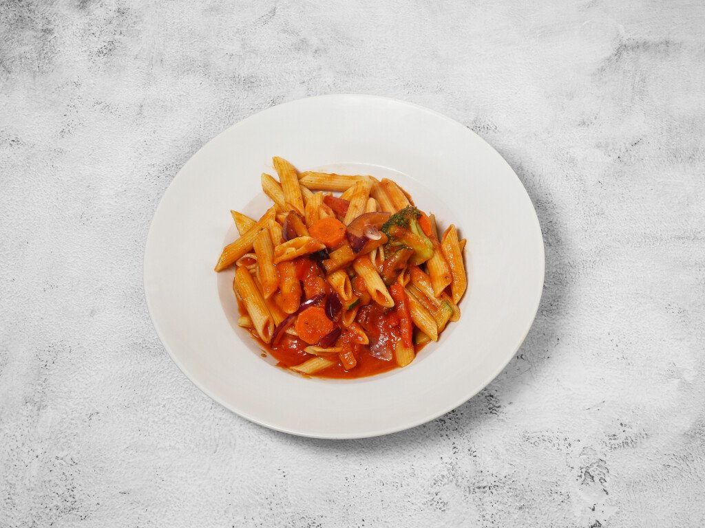 mit Paprika, Zucchini, Zwiebeln, Tomaten und Karotten