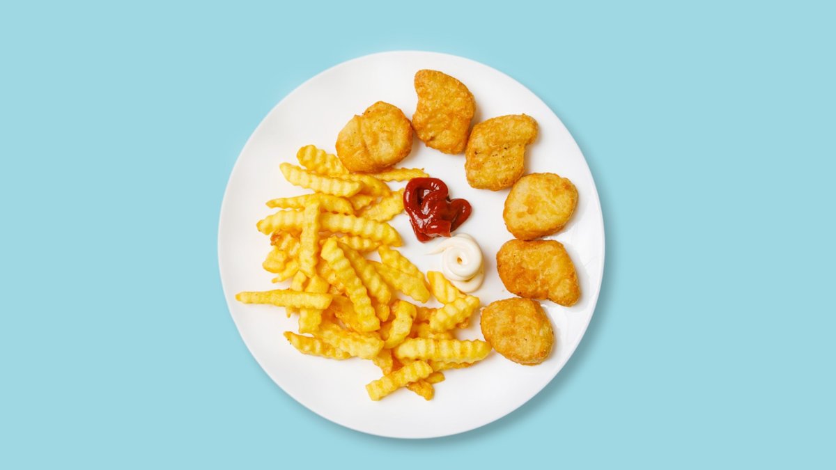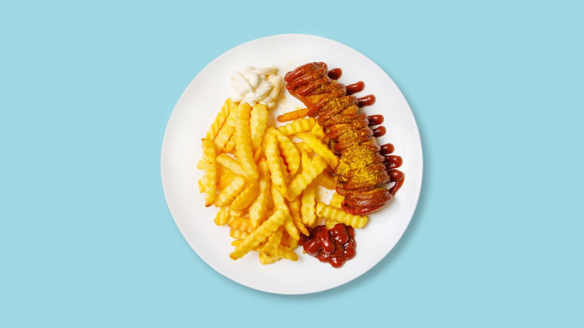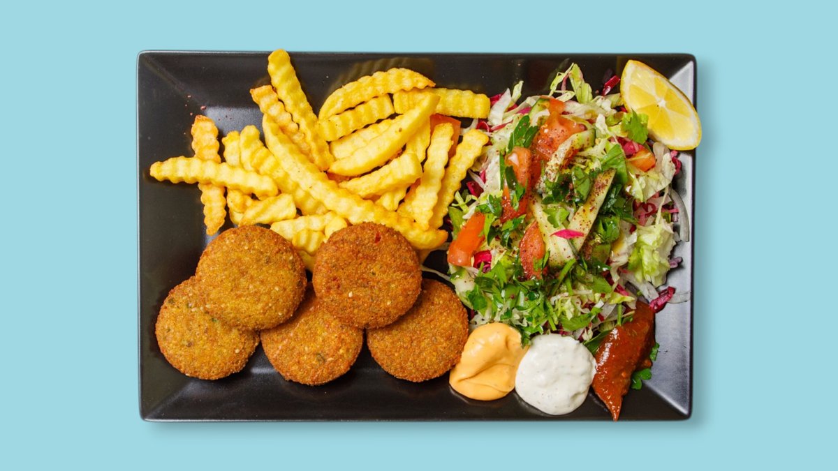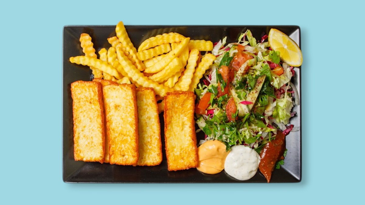 mit Pommes frites und Salat in einer Größe deiner Wahl