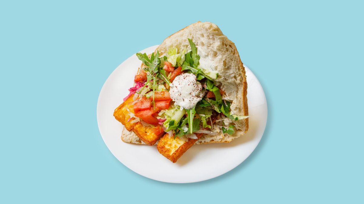 in Teigrolle mit Salat und einer Soße deiner Wahl
