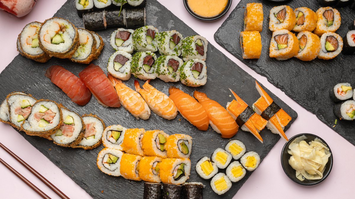 alle Gerichte werden in einer Größe deiner Wahl serviert („Edamame” wird nicht in einer Größe deiner Wahl serviert)
