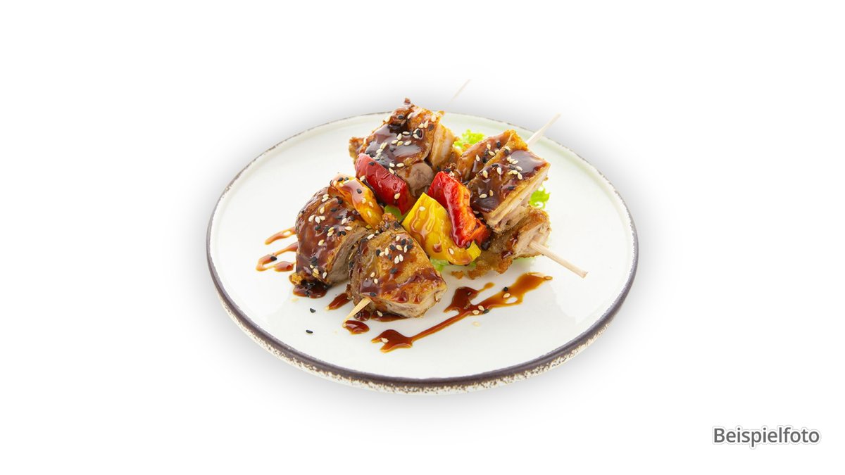 2 Stück gegrillte Hähnchenspieße mit Erdnussdip
