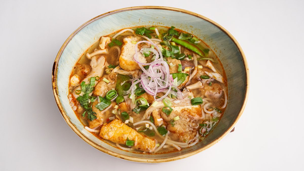 alle Gerichte werden mit Kräutern und Salat zubereitet („42. Bun Bo Hue“, „40. Pho Chay“ und „41. Ramen Chay“ werden ohne Salat zubereitet)