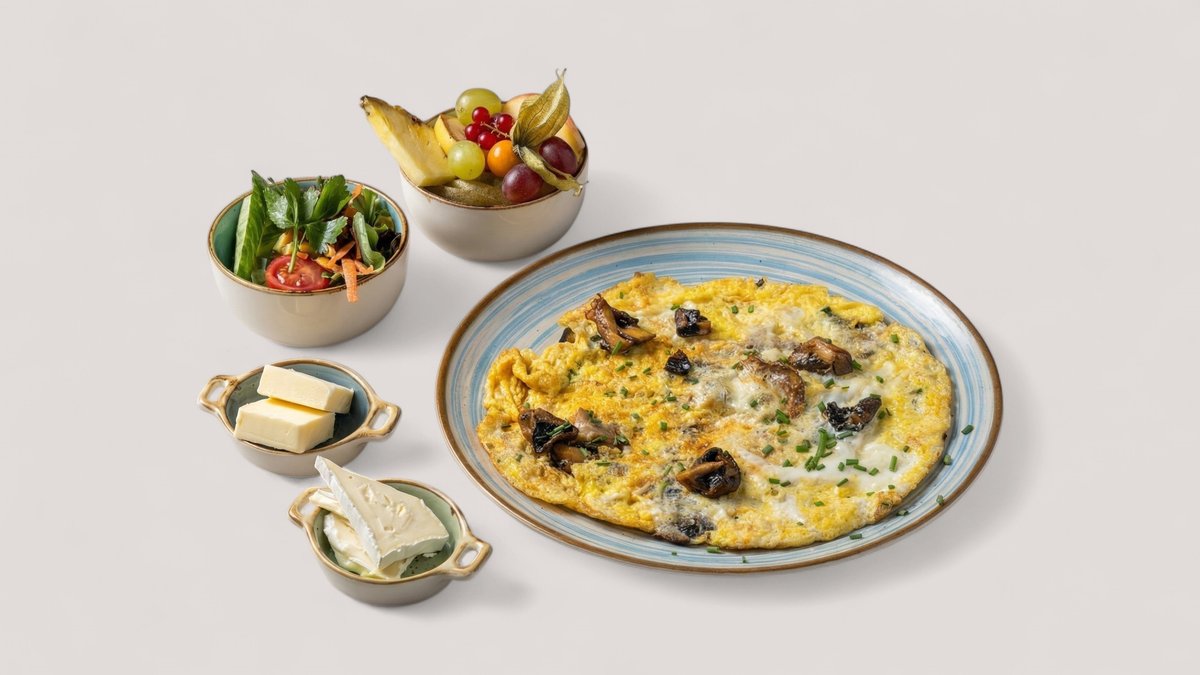 Omelett mit Pilzen, Trüffelöl, Butter und Brie