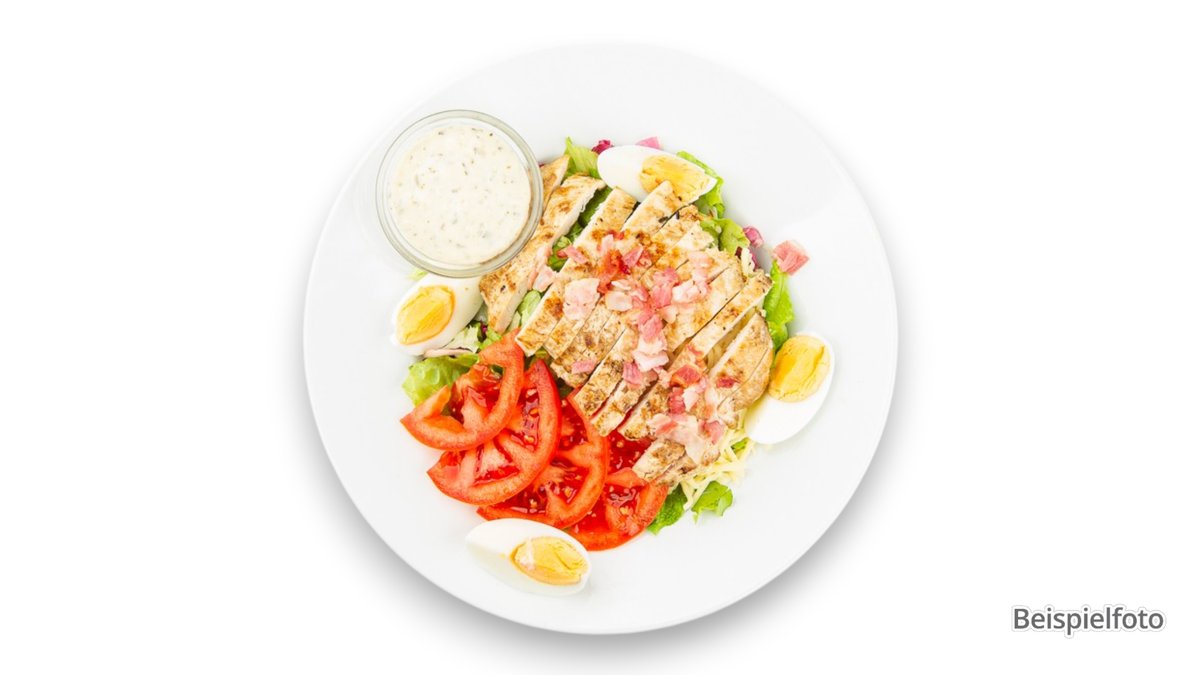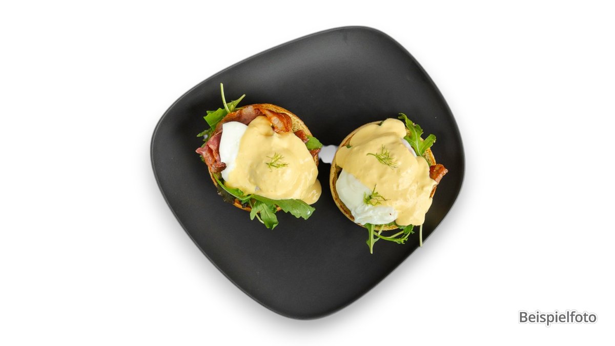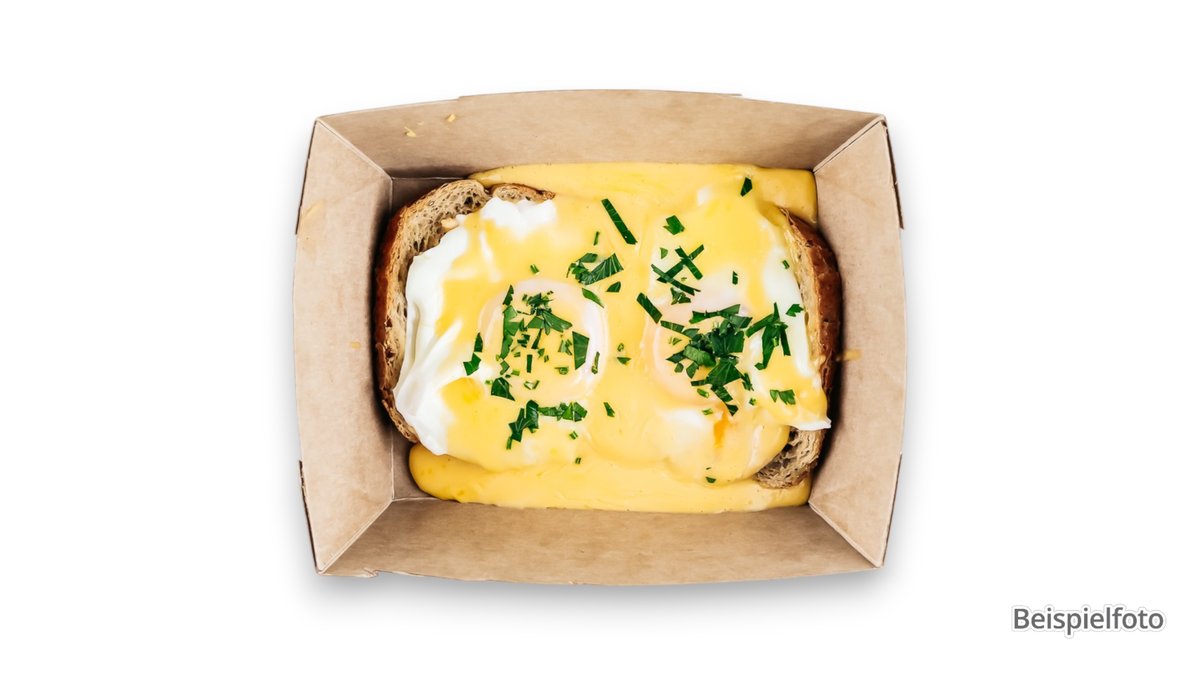 mit einem Ei aus nachhaltiger Haltung in einer Zubereitungsart deiner Wahl, Gouda, Salami vom Pute und einer Beilage deiner Wahl