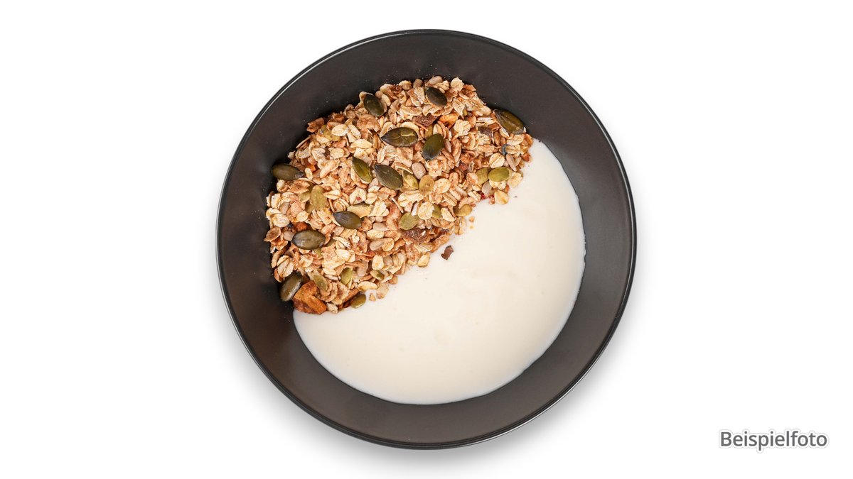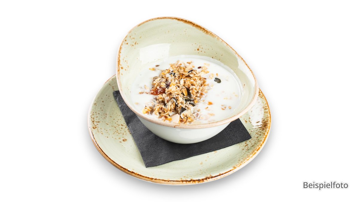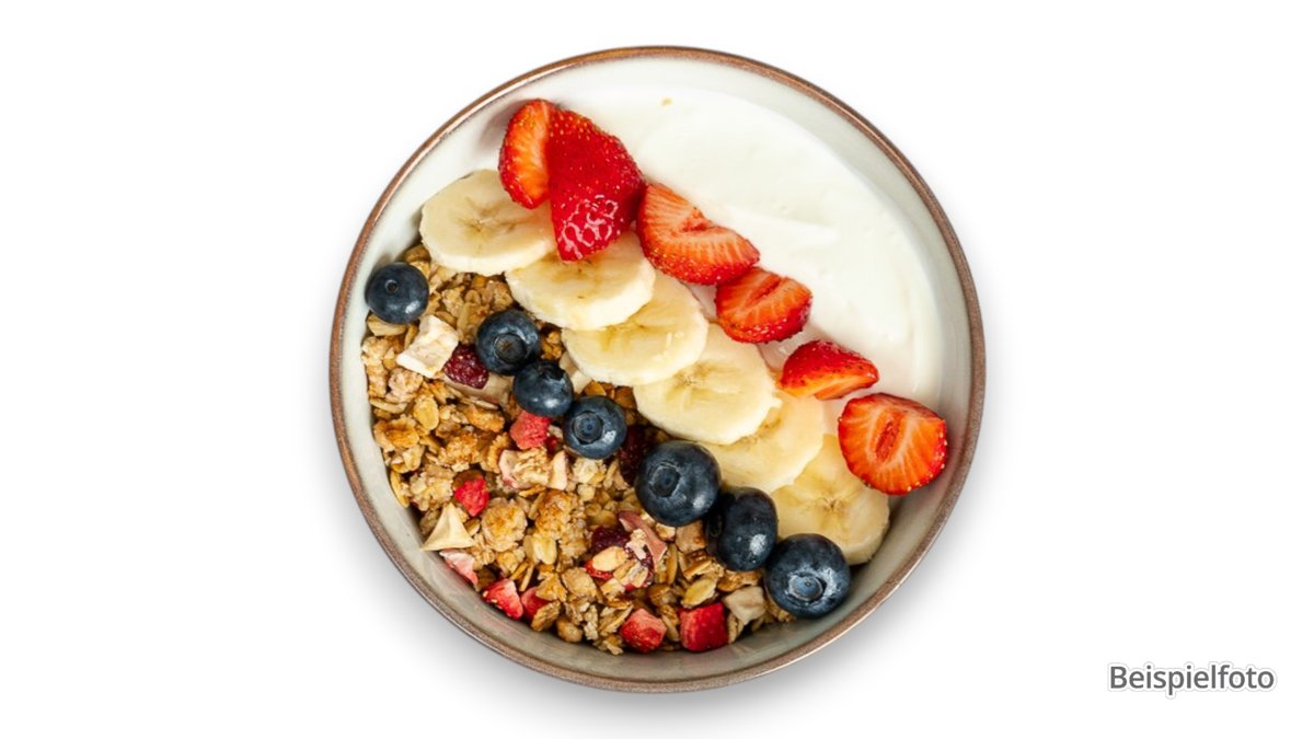 mit Naturjoghurt frischem Obst, hausgemachtem Granola und Datteln