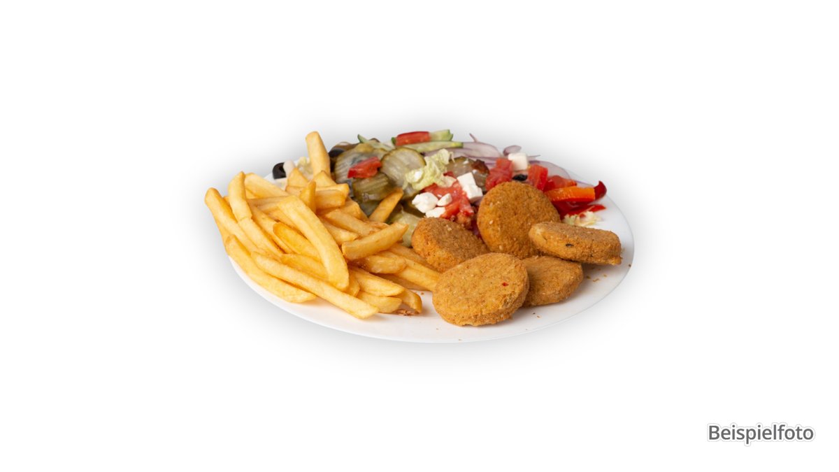 alle Gerichte werden mit Salat, Hummus und Tahinsoße zubereitet