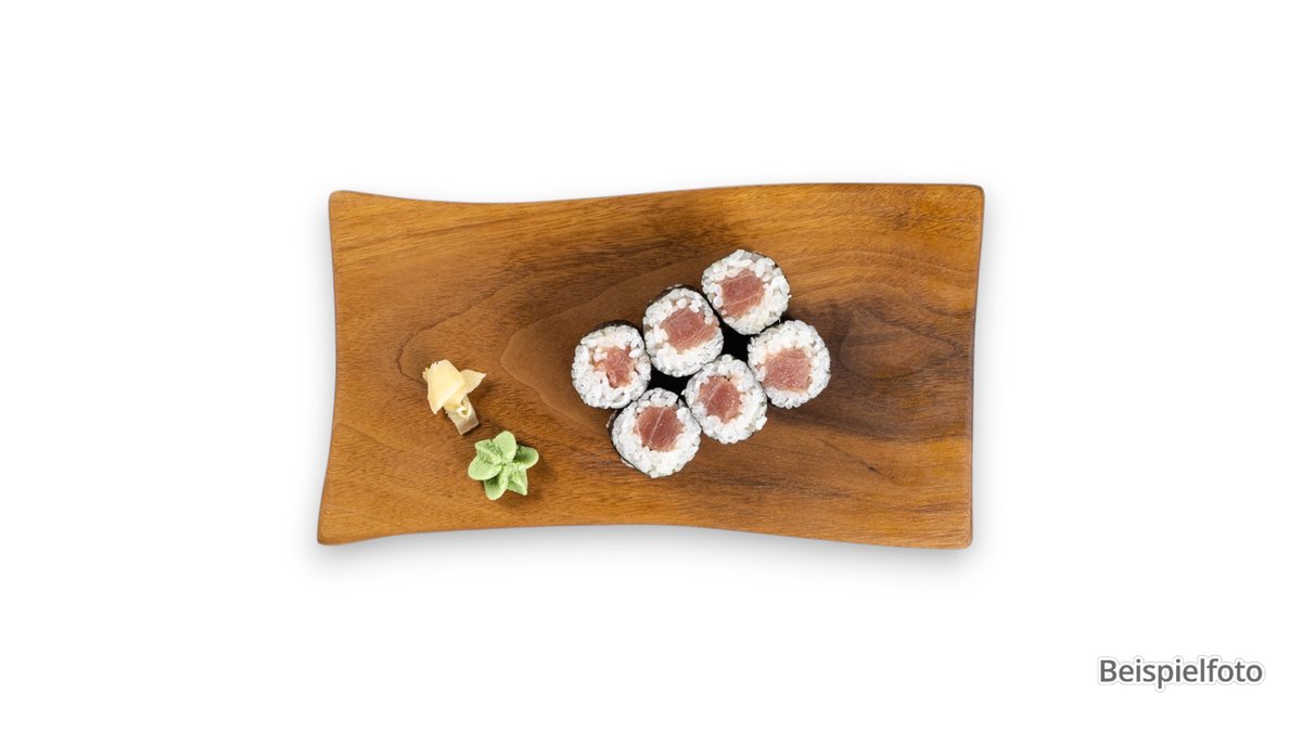 4x California I.O., 8x gebackene Sake Mini Roll, 3x Nigiri (Sake, Maguro, Ebi), 1x Sake Maki