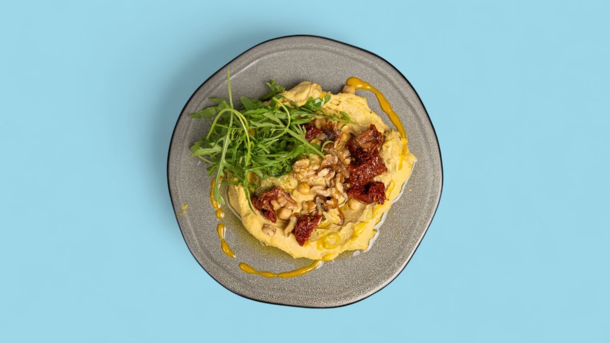 Hummus Bowl mit getrockneten Tomaten und Walnüssen