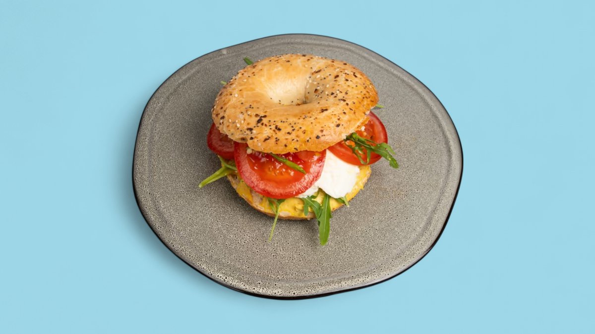 Gebackenes Ei, Croissant, Mozzarella, Champignons, Kirschtomaten, Parmesan.