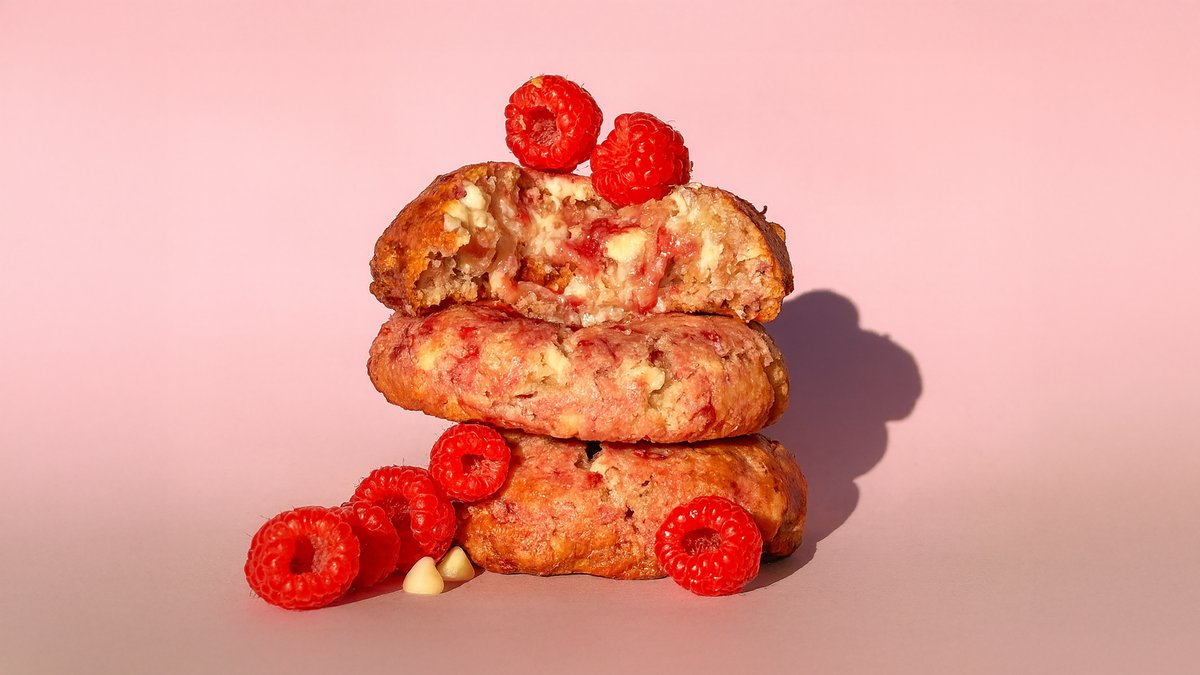 Handgemachter Plätzchenteig, gefüllt mit französischer weißer Schokolade und frischen Himbeeren. Eine perfekte Mischung aus süß, fruchtig und sauer.