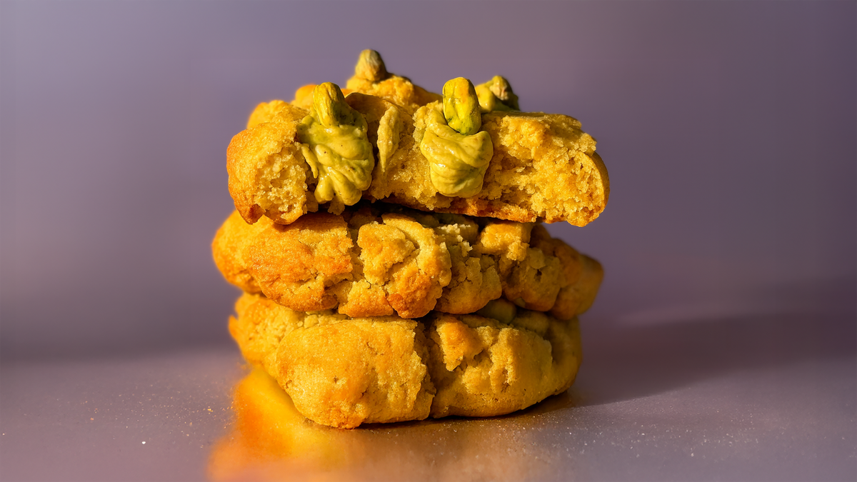 Entdecken Sie unser neues monatliches Highlight: den Pistazien-Cookie! Handgefertigter Cookie-Teig der aus den feinsten Zutaten hergestellt wird. Jeder Bissen ist ein Geschmacksabenteuer, gefĂĽllt mit weiĂźer Schokolade und knusprigen PistazienstĂĽcken und hausgemachter Pistachio-Creme. GenieĂźen Sie den unwiderstehlichen Geschmack und lassen Sie sich von unserem Pistazien-Cookie verfĂĽhren!