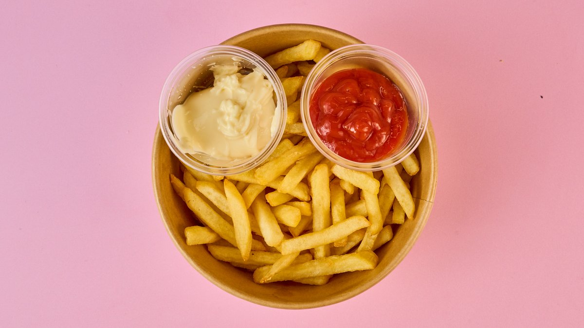 mit Pommes und einem Getränk nach Wahl