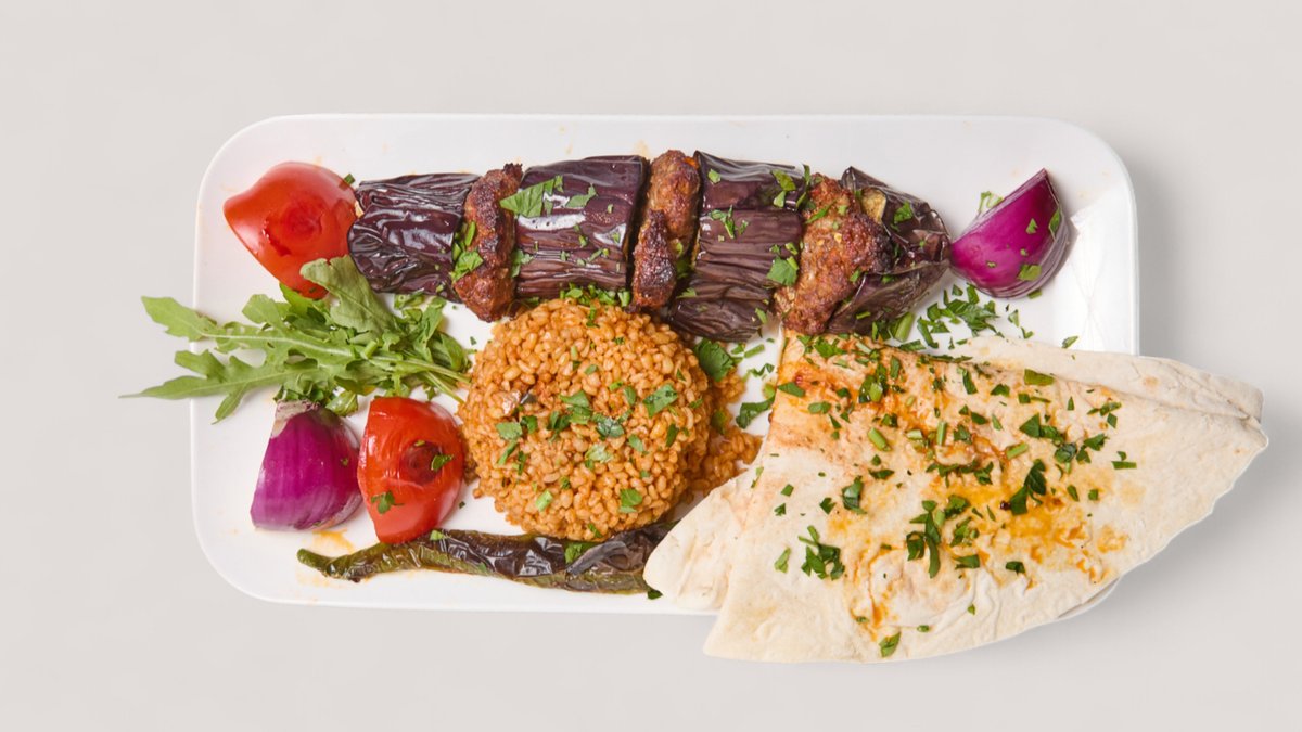 serviert in einer Größe deiner Wahl gemischter Grillteller mit Pirzola, Tavuk Sis, Urfa Kebab, Kusbasi und Köfte vom Kalbfleisch, Kanat vom Hähnchenfleisch und Findik Lahmacun