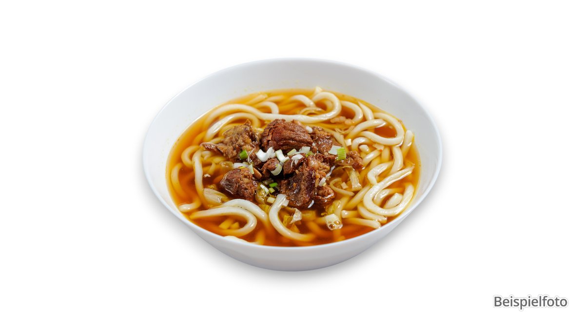 japanische Weizenmehlnudeln in kräftiger Hähnchenbrühe mit gemischtem Gemüse, Kräutern und einer Zutat deiner Wahl