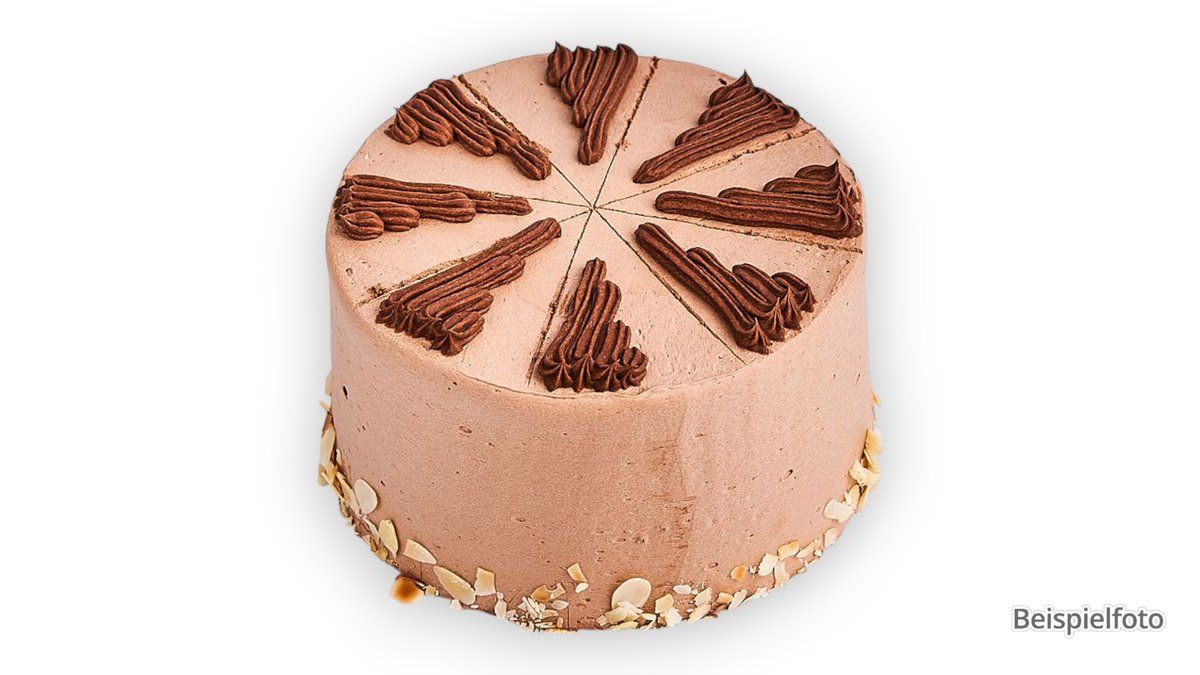 mit kakaohaltiger Glasur, dunklem Biskuit und Kakaocreme