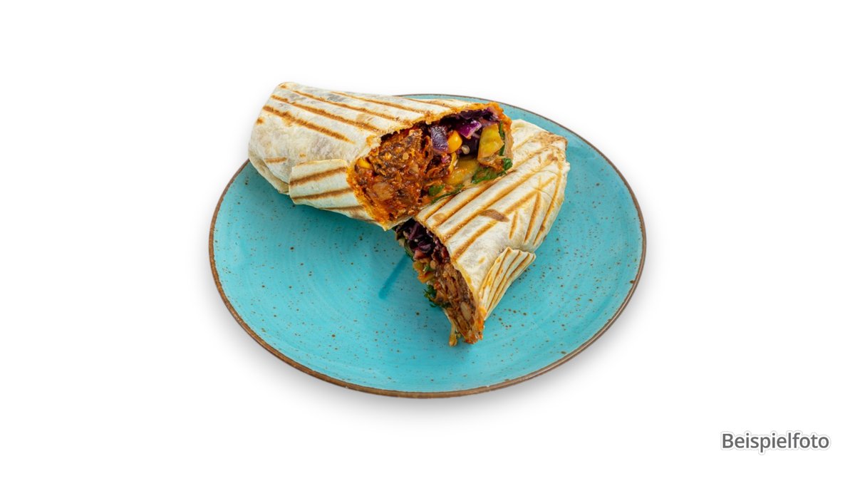 mit Weizentortilla, Salat, frischen Tomaten, Zwiebeln und hausgemachter Soße