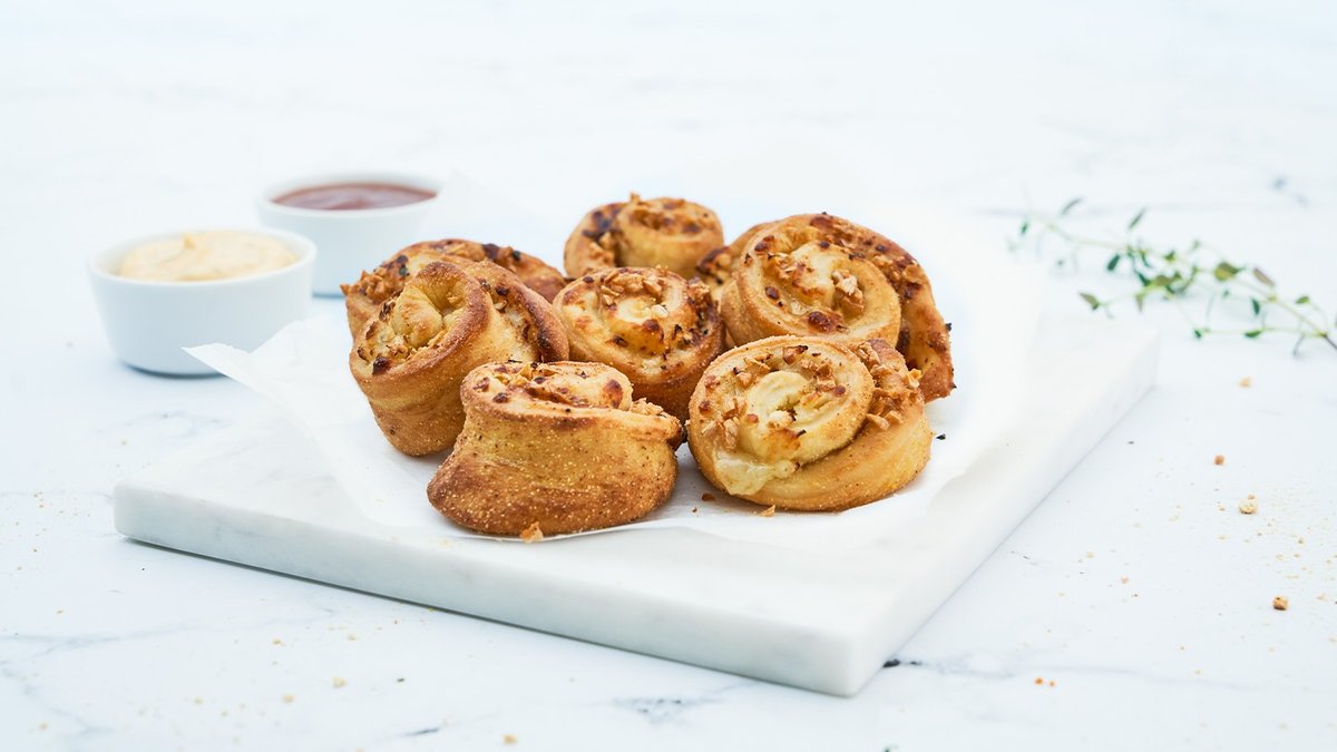 mit ca. 125 g Rindfleisch, Chipotlesoße, Gorgonzola D.O.P, roten Zwiebeln, Ketchup und Mayonnaise