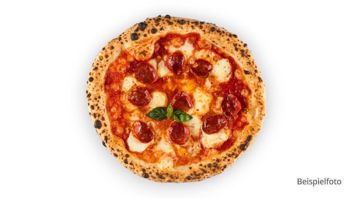 mit Pomodoro San Marzano, Fior di Latte, scharfer Salami und Parmesan