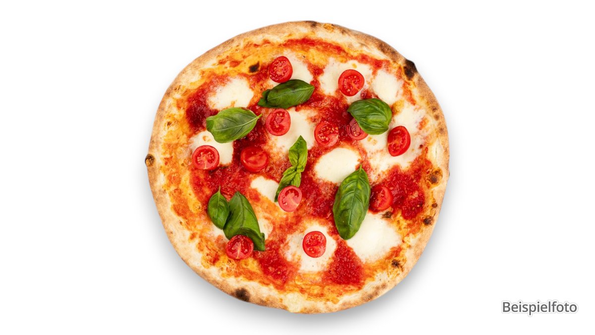 alle Pizzen werden mit nativem Olivenöl extra und Basilikum zubereitet („Pizza Salsiccia e Friarielli” wird ohne natives Olivenöl extra und Basilikum zubereitet)