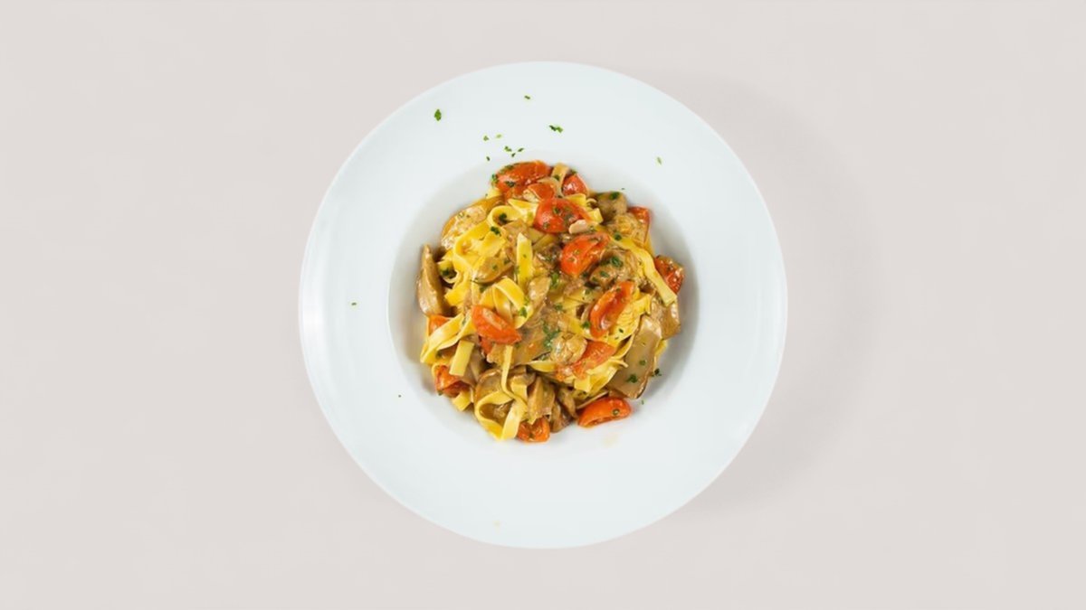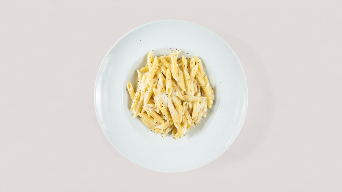 frisch zubereitete Rigatoni in cremiger Sahnesauce mit feinem Schinken