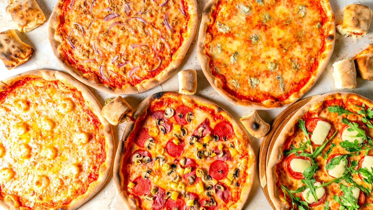 Durchschnitt: 33cm Alle Pizzen werde mit Tomatensauce und Käse als Basis belegt.