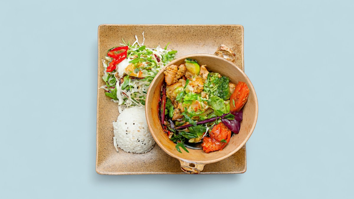 mit Kokosmilch, Brühe, Zucchini, Tomaten, Champignons, Limettensaft, Koriander und einer Zutat deiner Wahl