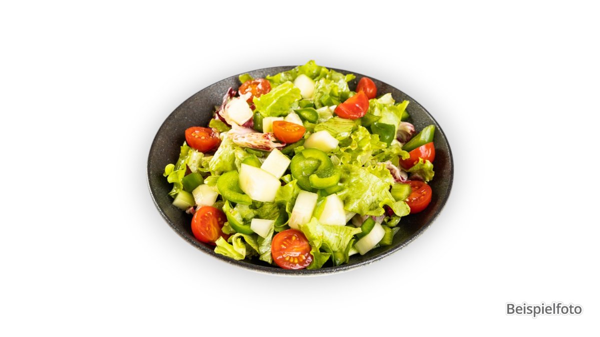 alle Salate werden mit einem Dressing deiner Wahl serviert („Beilagensalat” wird ohne Dressing nach Wahl serviert)