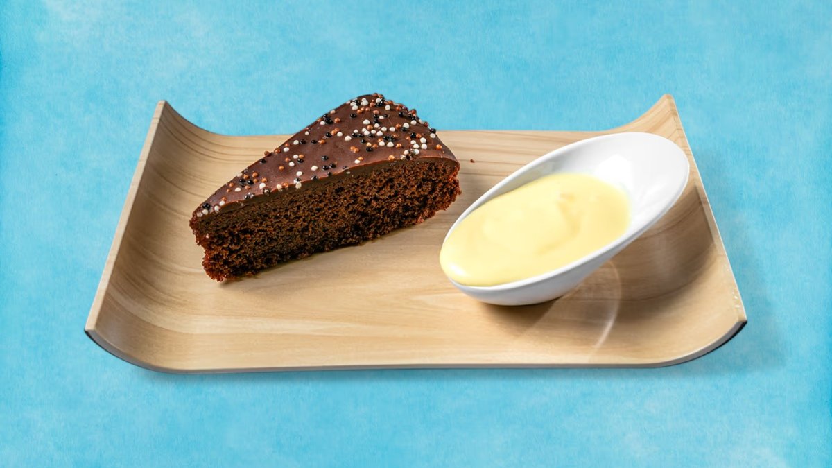 mit feiner Vanillesoße Das Gericht wurde mit Schokolade zubereitet und kann Spuren von verschiedenen Nüssen enthalten
