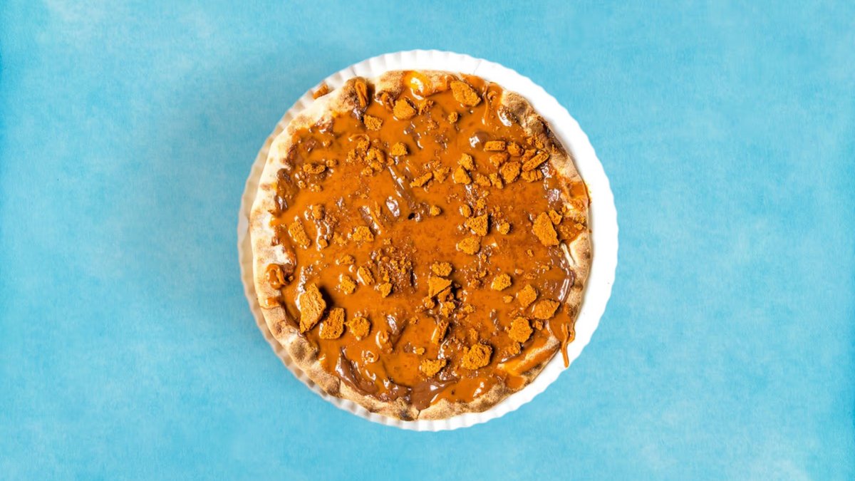 frisch gebackener Pizzateig mit warmer Nutella und cremiger Lotus-Creme