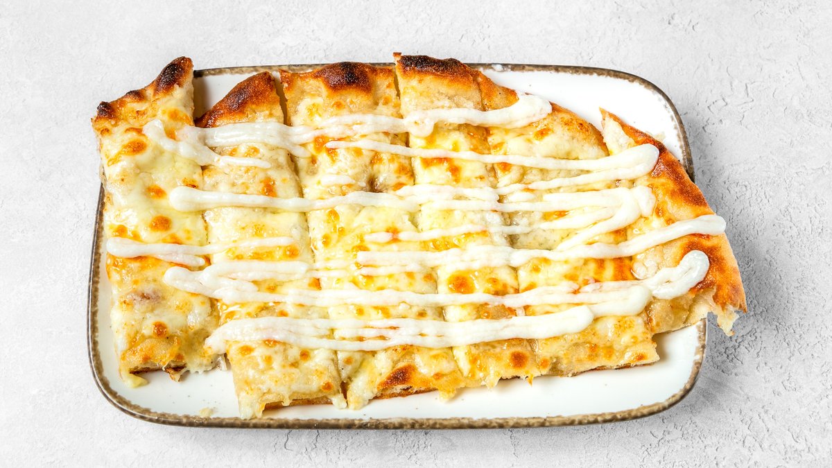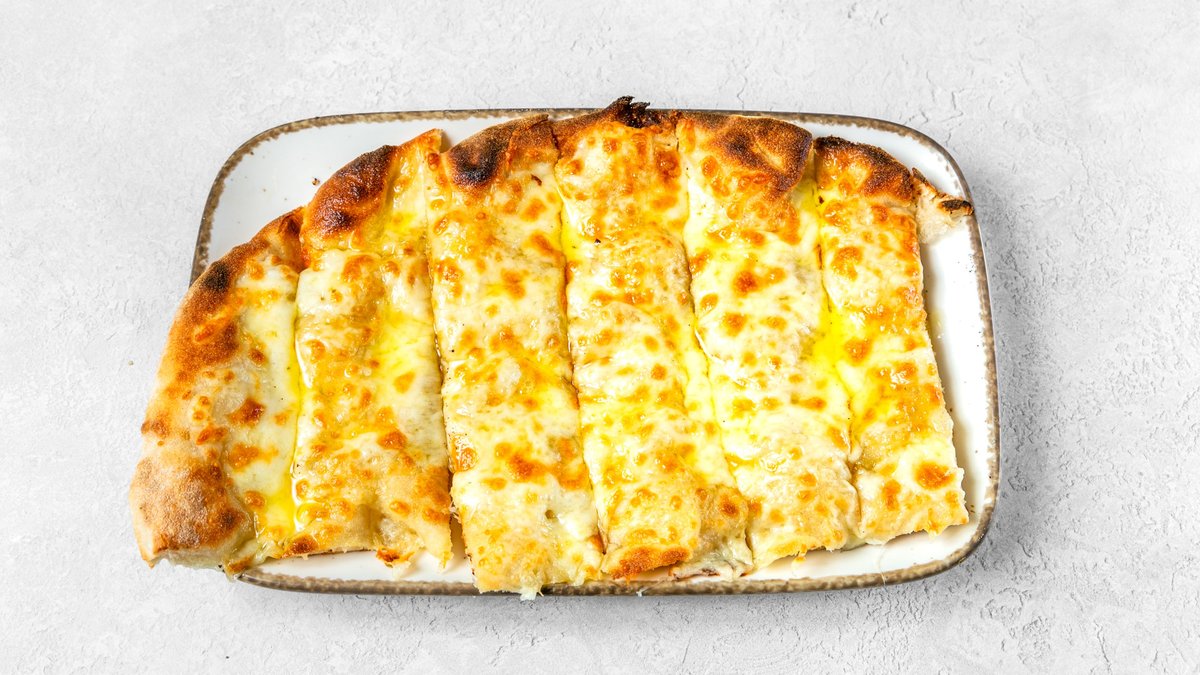 alle Gerichte werden mit geschmolzenem Mozzarella-Gouda-Mix zubereitet und mit einem hausgemachten Dip serviert („2. Pesto Cheesy Dippers” wird mit geschmolzenem Mozzarella-Gouda-Pesto Mix zubereitet)