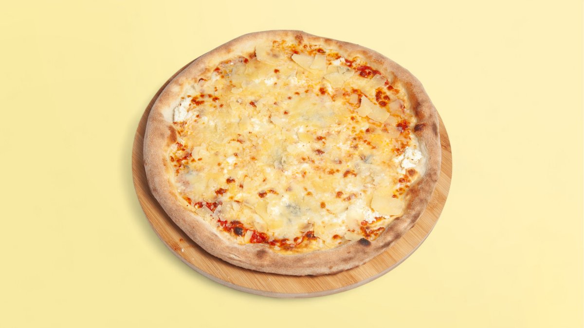 mit vier Käsesorten, Tomatensoße und Mozzarella