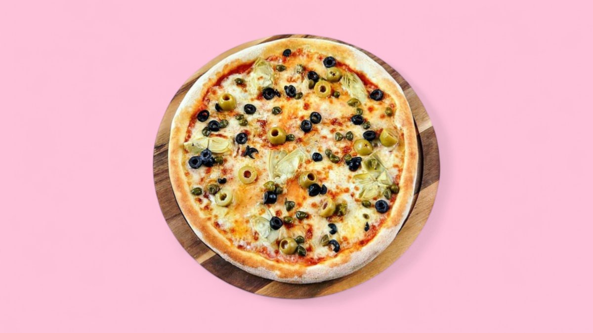 mit Spinat, Brokkoli, Artischocken, grünen Oliven und veganem Mozzarella